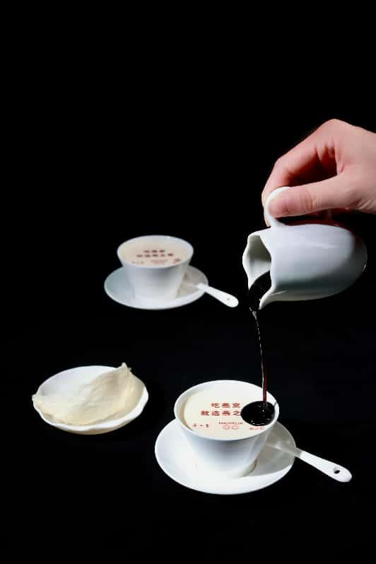阿膠燕窩發(fā)酵酸奶酪,山東阿膠、燕之屋燕窩與驢奶三種珍稀食材創(chuàng)意融合,經(jīng)24小時發(fā)酵沉淀成絲滑酸奶酪,頂部搭配酒糟阿膠,入口絲滑綿密,透出絲絲膠香,滋養(yǎng)與口感雙重升華。這一款甜品則跳脫中餐語境,是對“滋養(yǎng)”概念最當(dāng)代表達(dá)的寫照,跨越時空的食材協(xié)奏,正是王浩全對“滋補”理念的重釋。